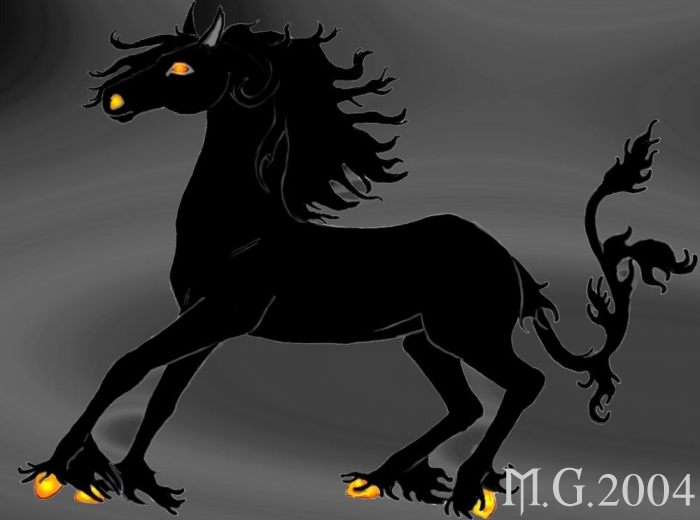 without fire, execpt for his burning hooves, nostrils and eyes. The tail is